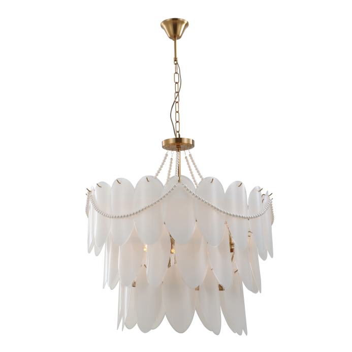 Нашият силно осветление популярен тристепенна винтидж луксозен полилей с перли преосмисля класическата европейска естетика за днешните луксозни домове. Всяко ниво показва ръчно уредени млечно-бели стъклени панели, които дифузират светло тихо, създавайки топъл златист блясък. Внимателно драпираните перлени струни добавят движение и текстура, като се улавят леко от всеки ъгъл.
